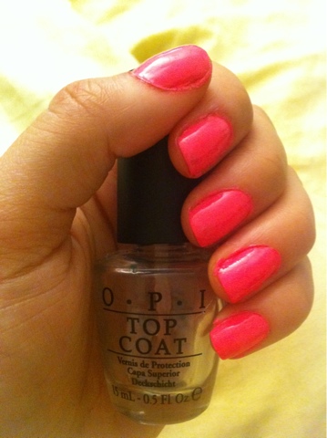 With my broken leg I've got all kinds of free time so I painted my nails again this evening while Benny was out shredding. I choose OPI Natural Nail Base Coat, Sinful Colors 24/7, and OPI Top Coat. I love the neon pink it's one of my favorite colors from this summer and I can't resist putting it on again!